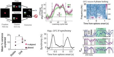 The orbitofrontal cortex (OFC) encodes reward predictions (i.e. value) at the level of both single neurons, and the population. This work aimed to understand the role of local field potentials in relation to value encoding. Unfortunately, dissecting the causal contributions of this encoding can be challenging. I developed a closed-loop system capable of directly targeting theta oscillations without affecting underlying neuronal firing rates. We found that OFC neurons preferentially encode value in phase with theta (4-8 Hz) field oscillations. Theta is a low frequency signal related to long-range communication between brain regions while providing conditions favorable for synaptic learning processes. When theta activity is disrupted with closed-loop electrical stimulation, value encoding of single OFC neurons too was disrupted, resulting in our subjects becoming unable to update their beliefs about the value of task-relevant stimuli. When recording from hippocampus, a region that has significant theta-band modulation during behavior, I found that theta activity in hippocampus is a driver of OFC theta, implicating hippocampus in the task. Disrupting hippocampal theta signals with the same closed-loop system produced a similarl disruption of behavioral flexibility. This work was recently published in Neuron (https://doi.org/10.1016/j.neuron.2020.02.003).